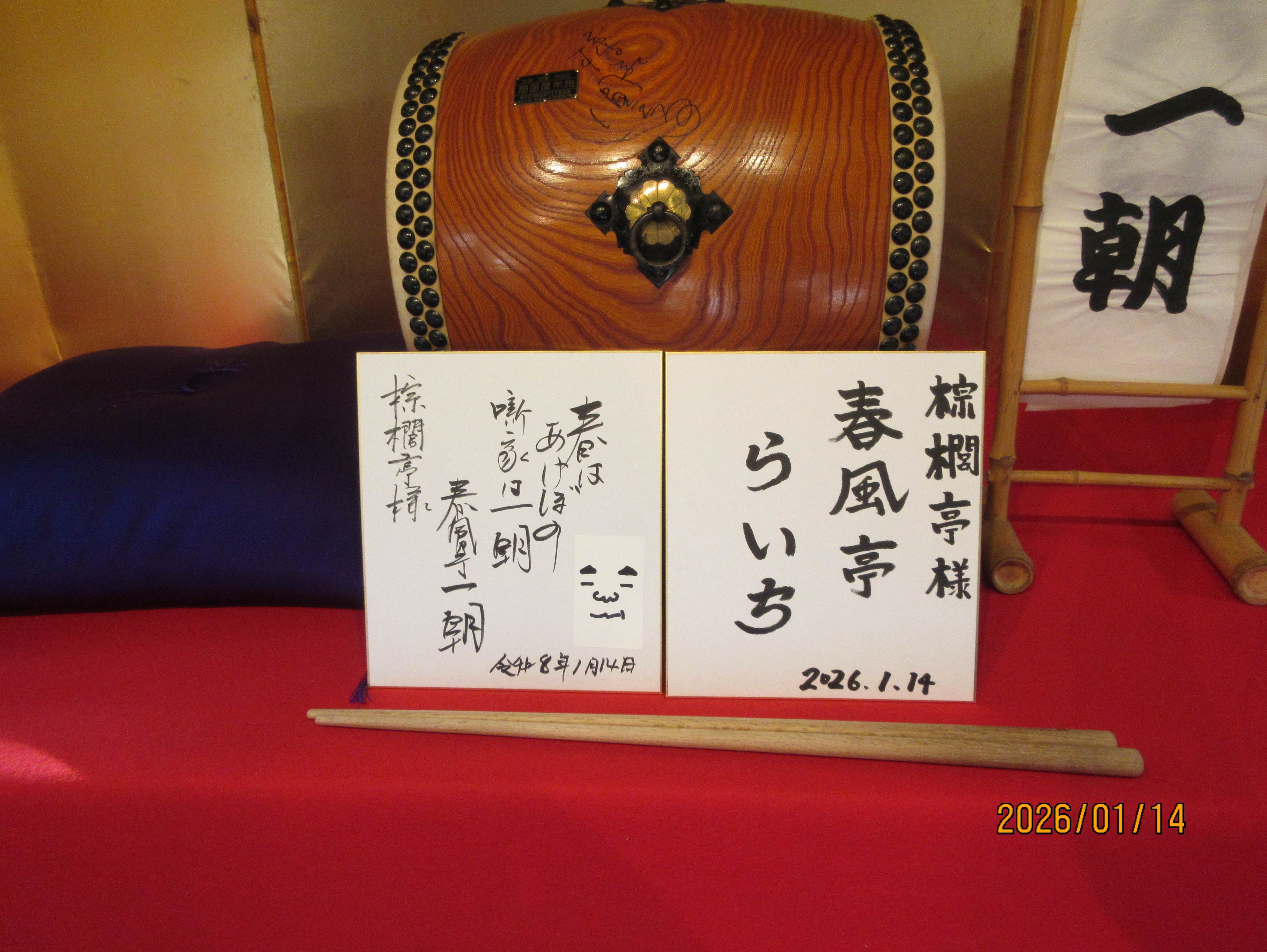 壇上にサインを飾って一枚。